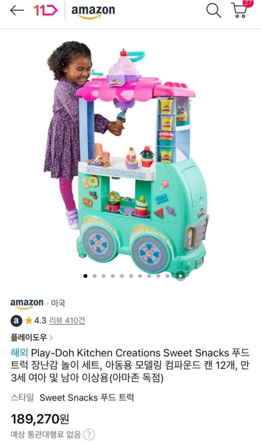 당근미개봉. 플레이도우 키친 크리에이션 스위트 스낵 푸드 트럭