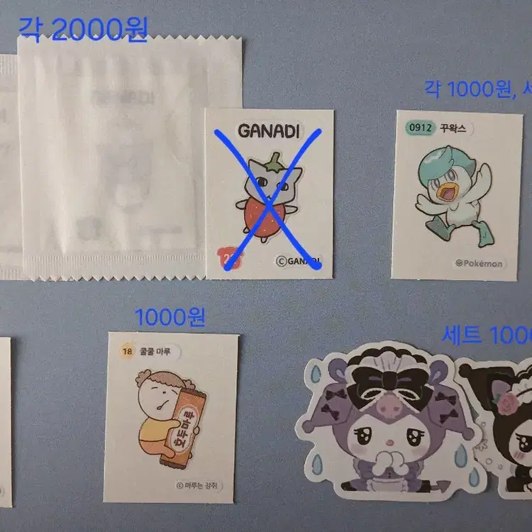 번개가나디 과자, 마루는 강쥐, 포켓몬스터, 쿠숭이 띠부씰