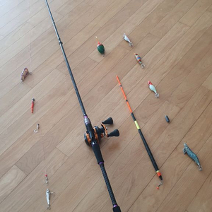 당근[거의 새거] 일괄판매.쭈꾸미 낚시대 2개, 릴, 케이스❤️