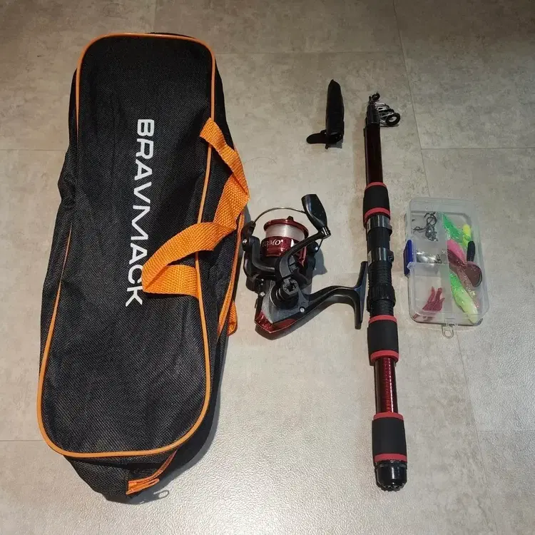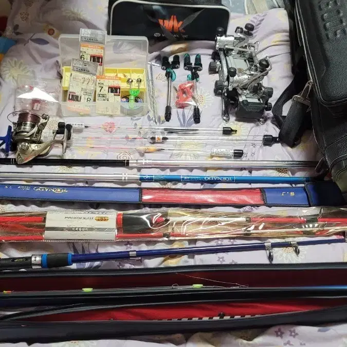번개낚시대와 낚시가방 및 낚시용품 세트