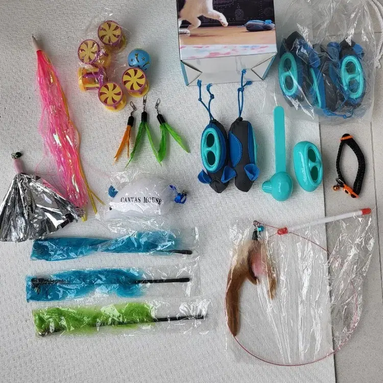 번개고양이 장난감 먹이트릿 하네스 낚시대 리필 미사용 새상품