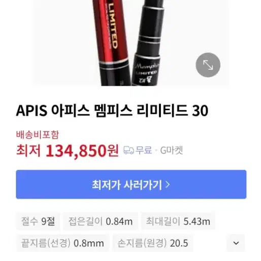 번개멤피스리미티드 20~38 전천후 민물낚시대