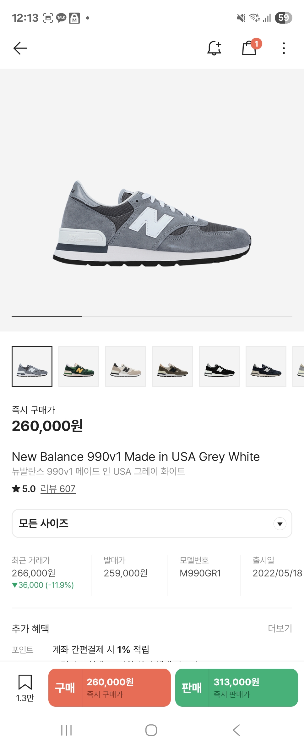 뉴발란스 990v1 그레이 m990gr1 265,275