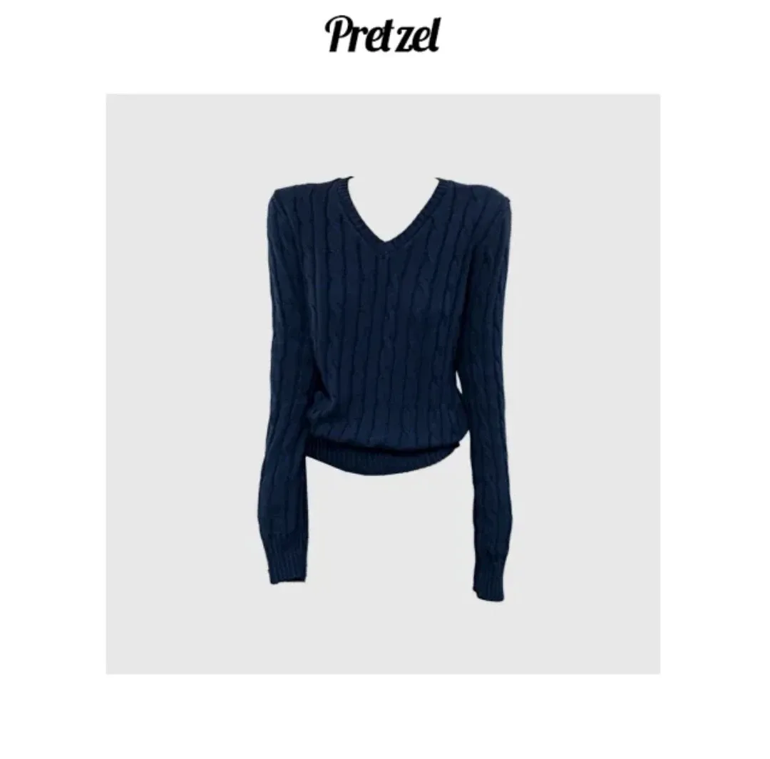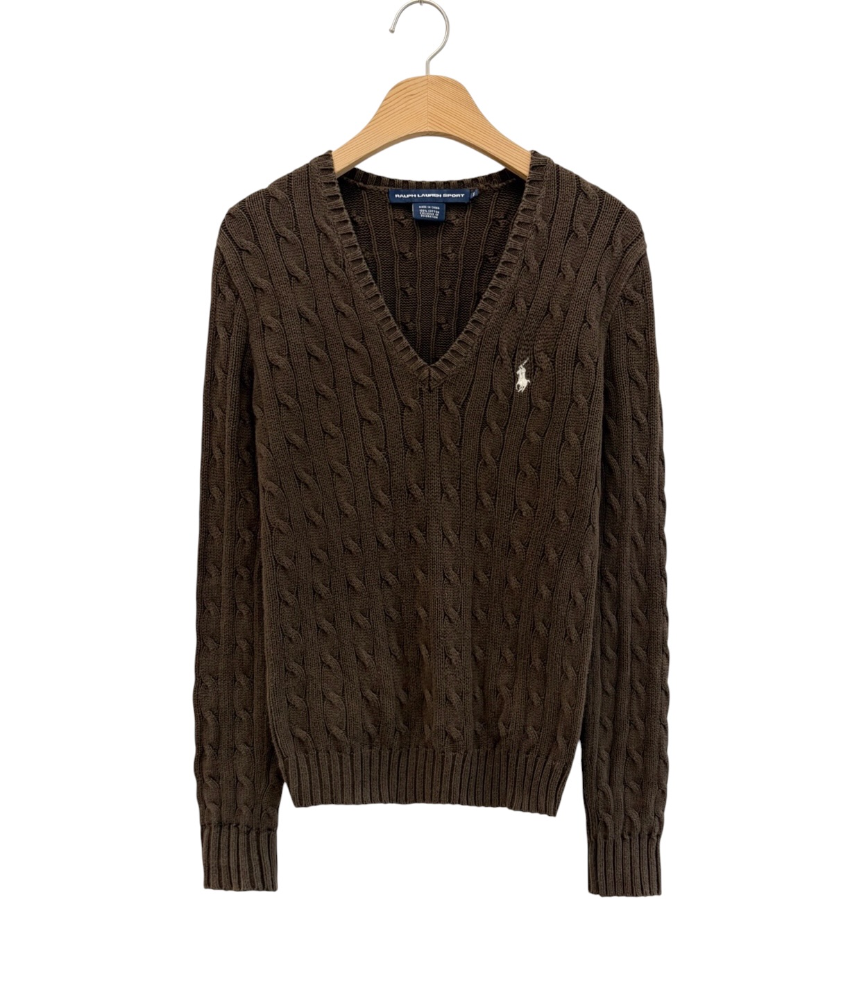 플리폴로 브이넥 꽈배기 케이블 니트 브라운 (여성S)
