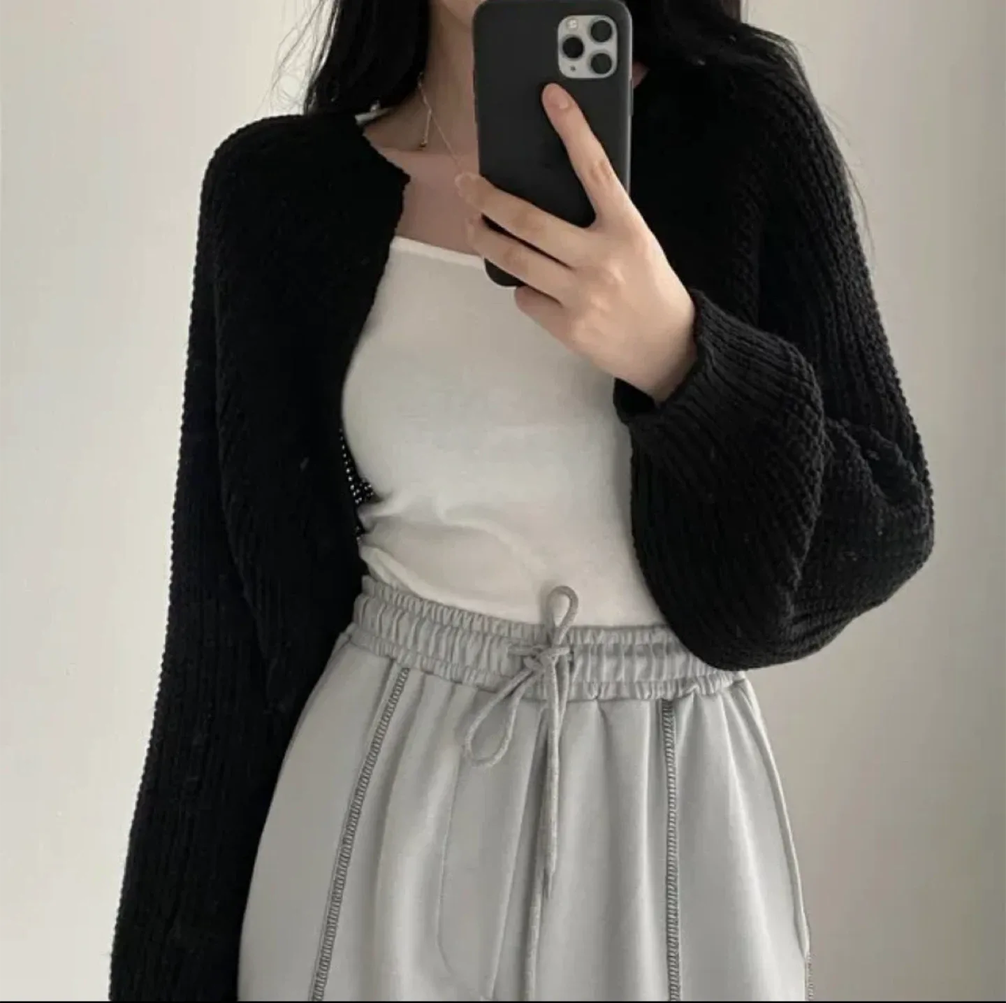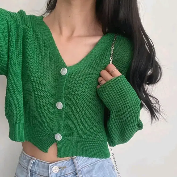 번개린넨 니트 크롭 가디건
