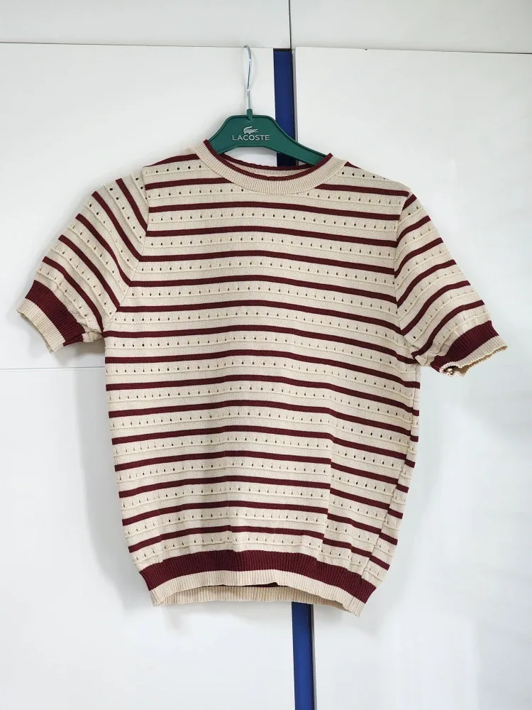 타임 여름 5부 스트라이프 니트(브라운)