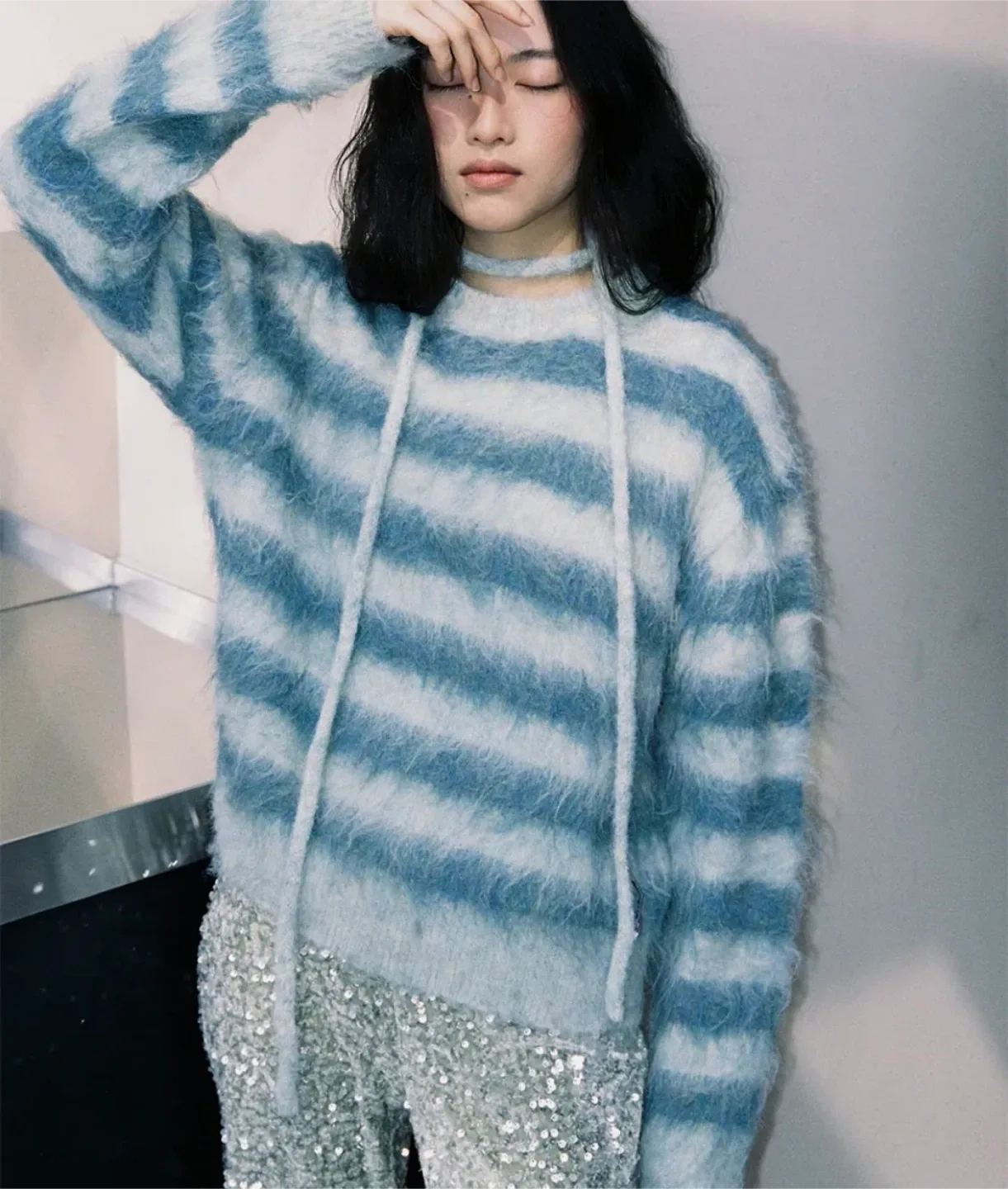 번개시원한 하늘색 니트 스웨터