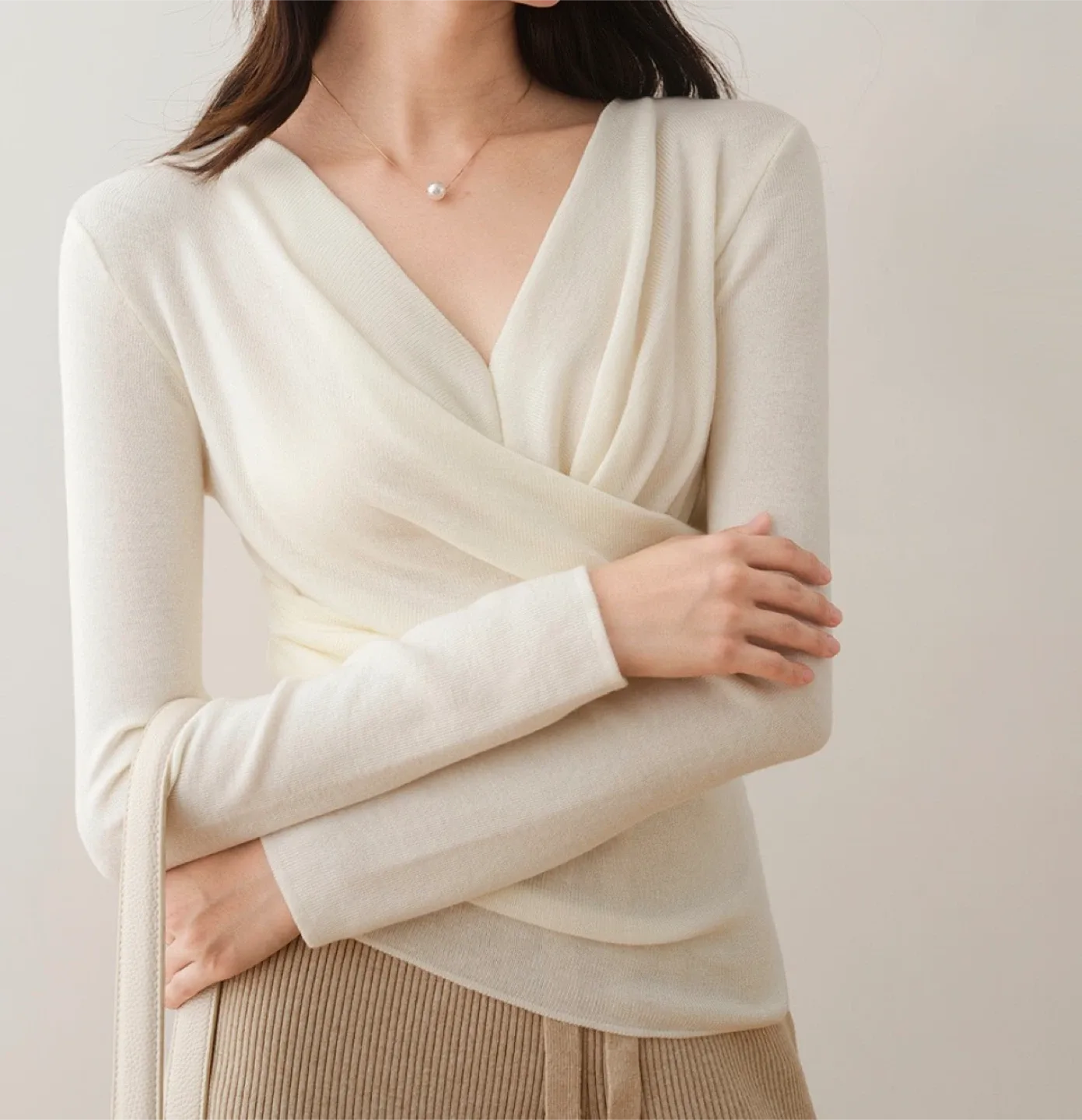 타임 5부 브이넥 니트