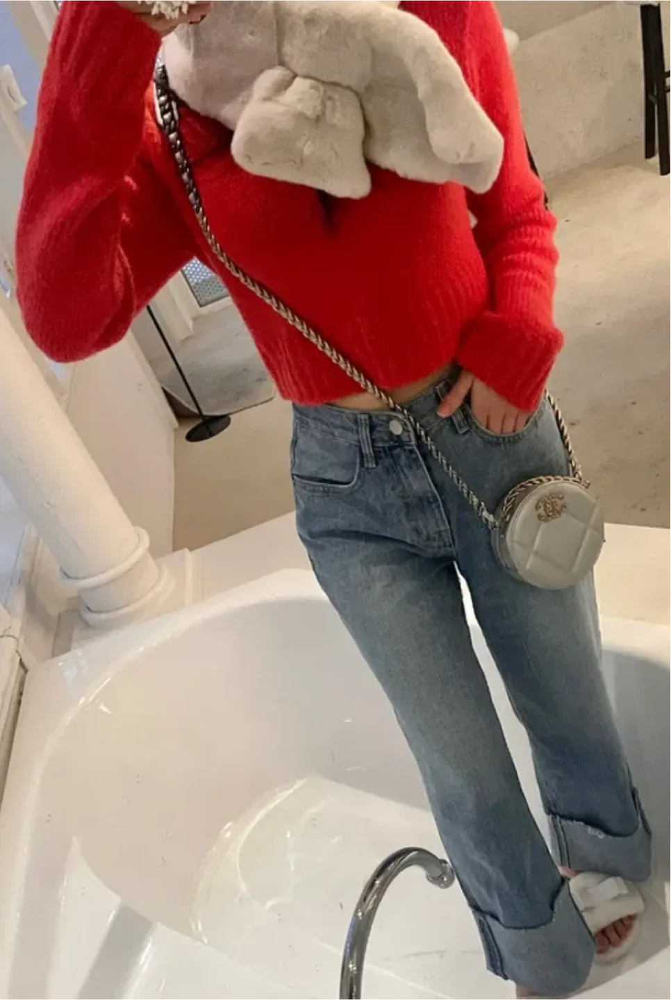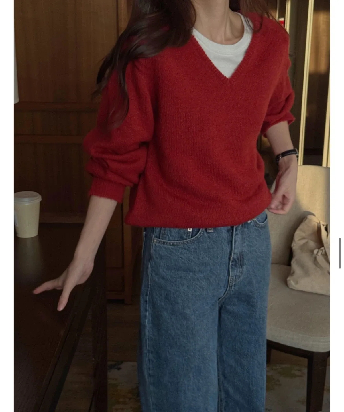 번개에이블리 레드 니트