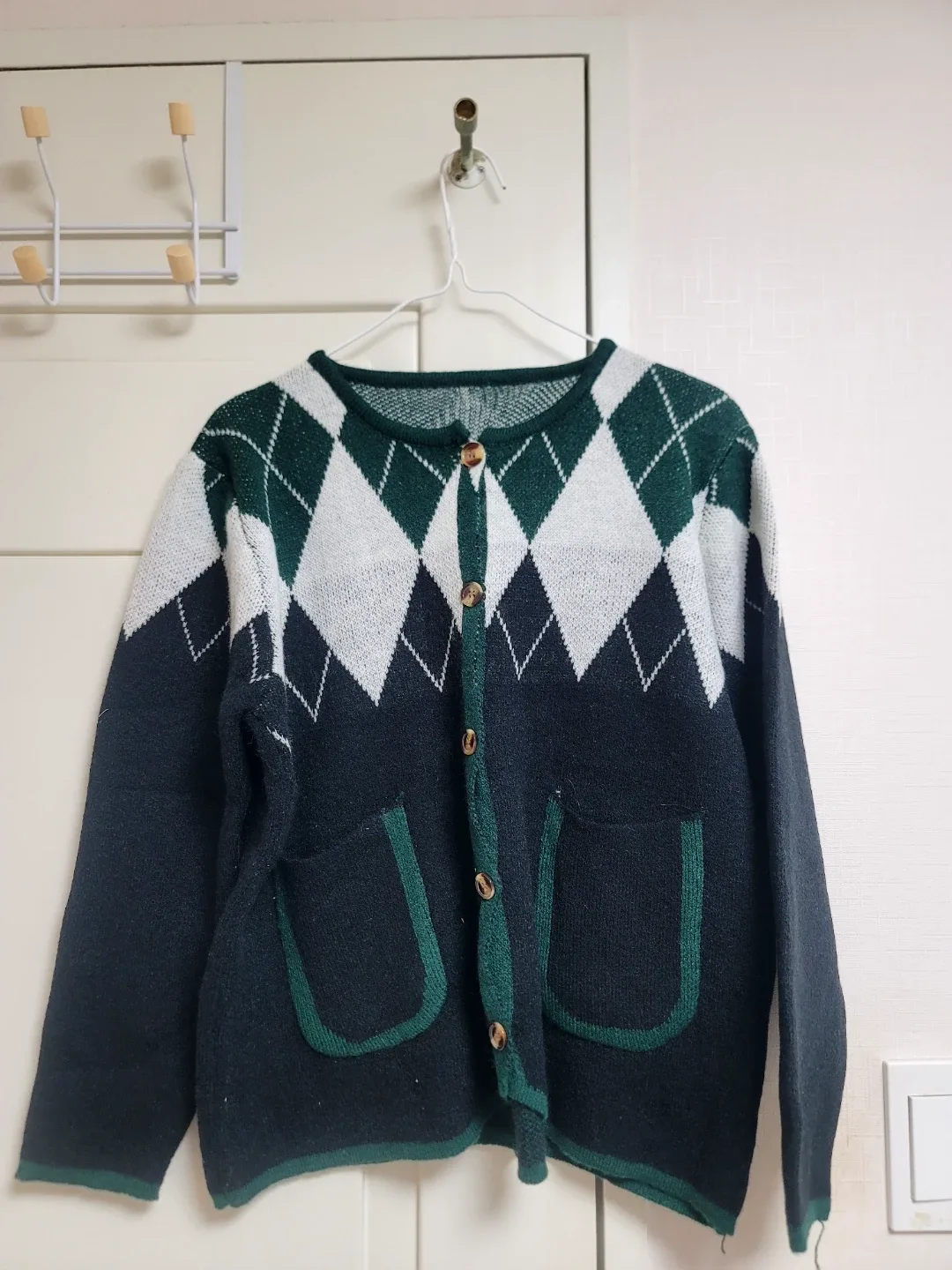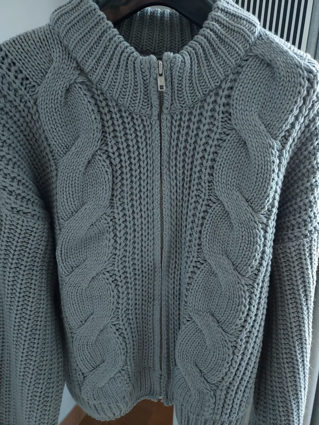 번개남녀공용 케이블 니트 집업 가디건 (L/XL) 빈티지 감성 봄 가을
