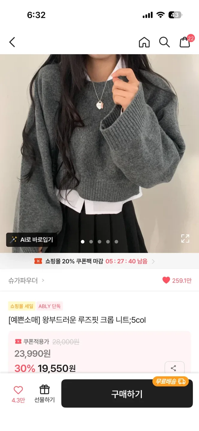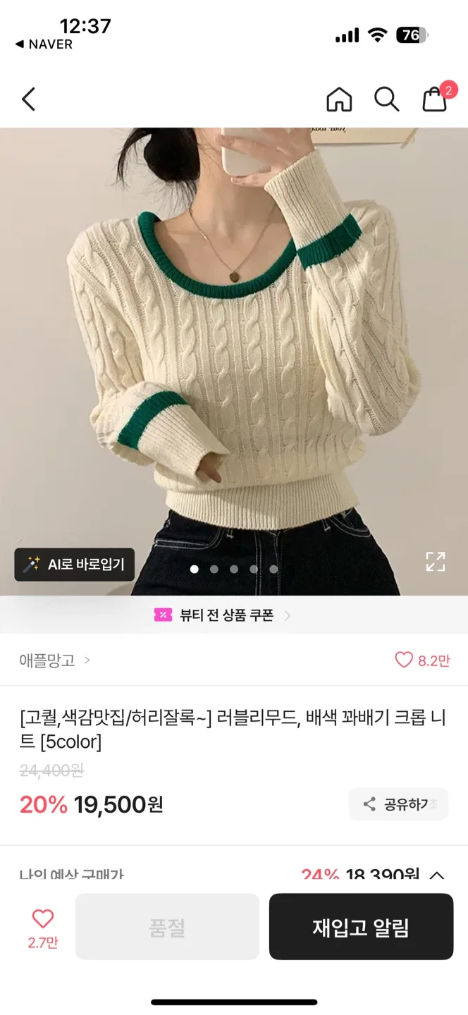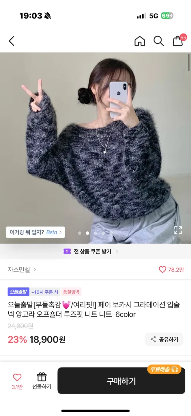 마인 웨이브넥 니트 55