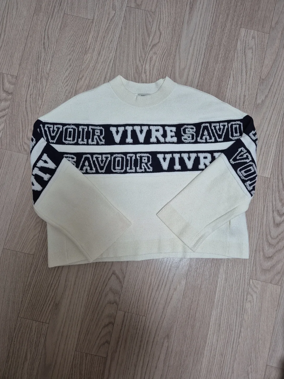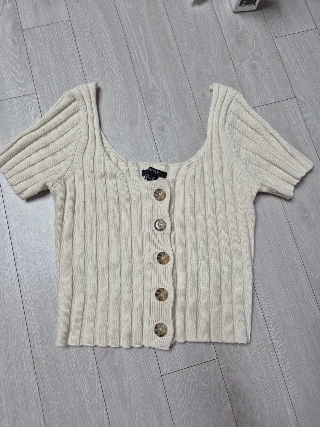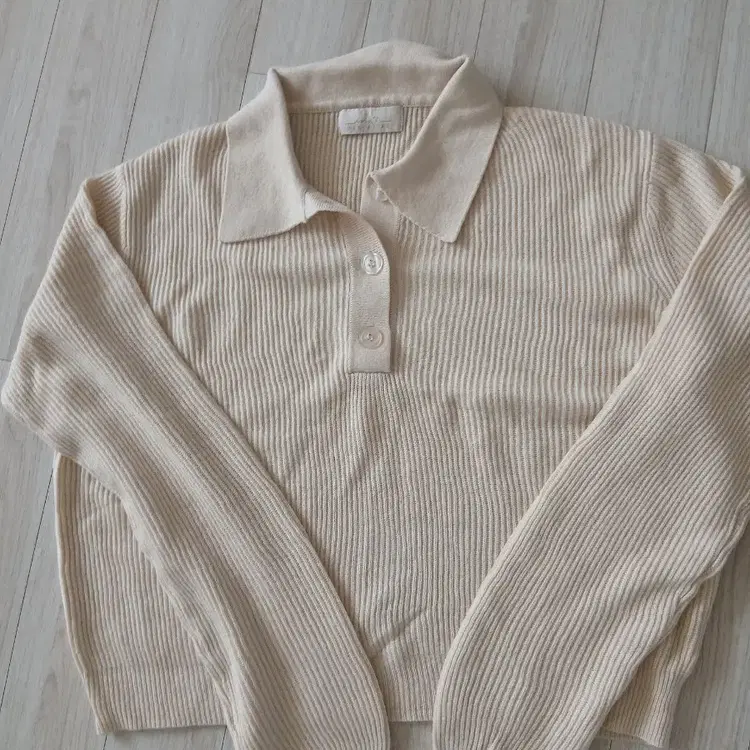 번개[L 실착 1회]Ecru standard 아이보리 니트 반팔