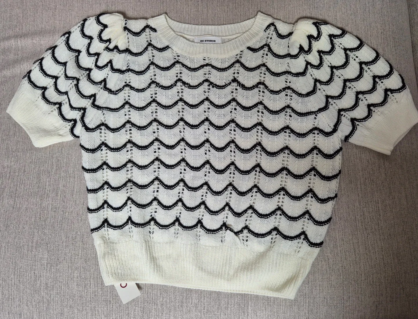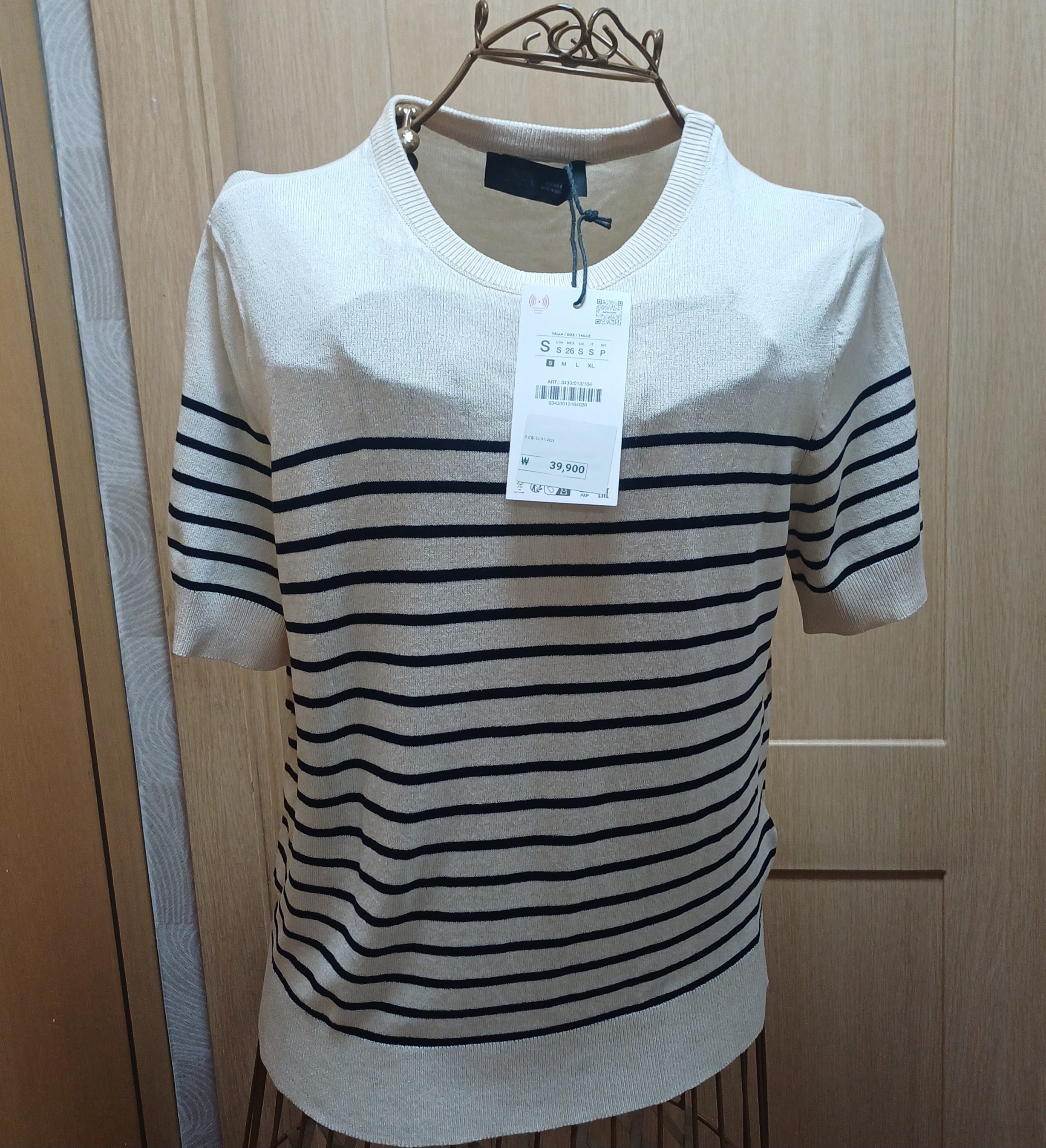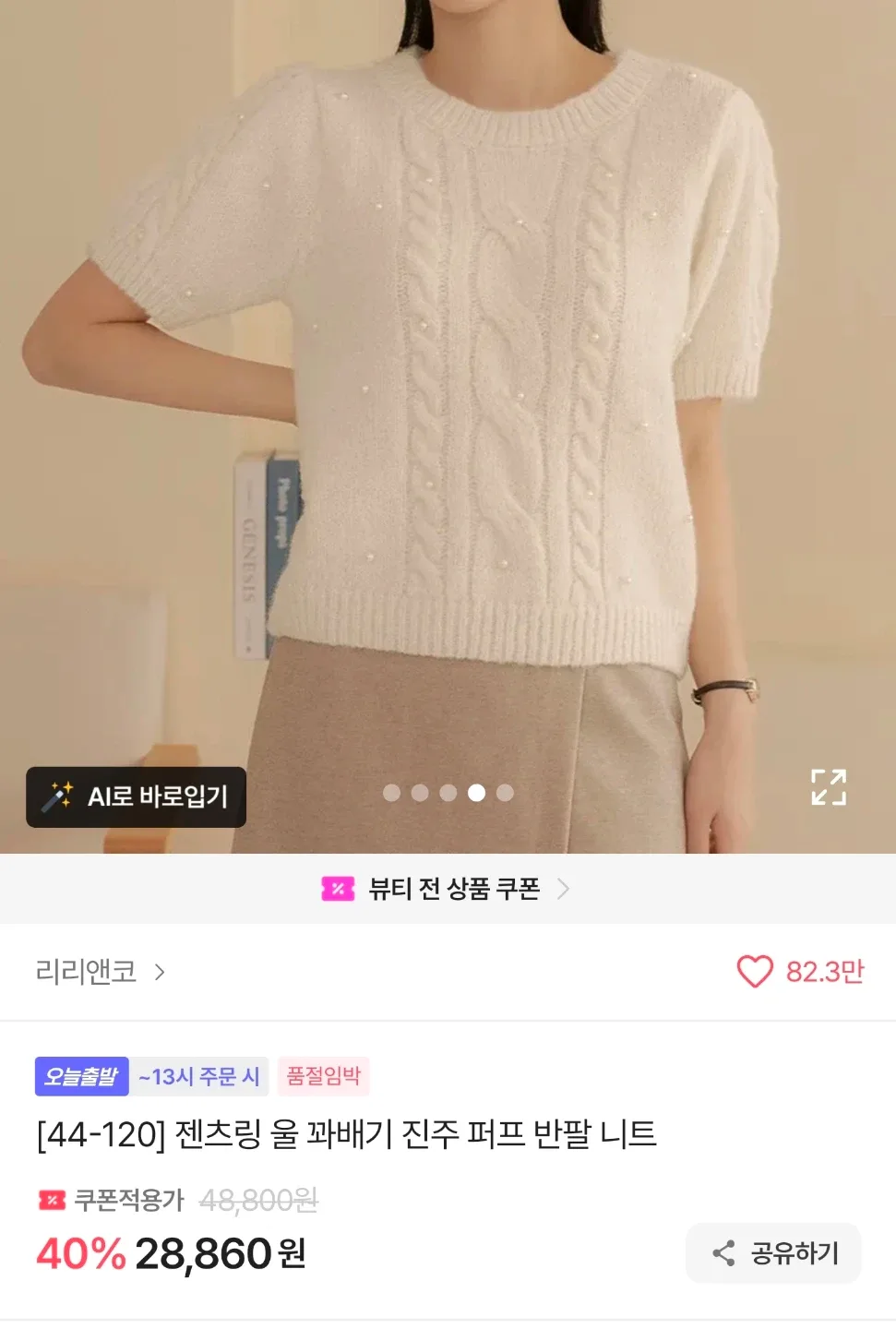 번개[L 실착 1회]Ecru standard 아이보리 니트 반팔