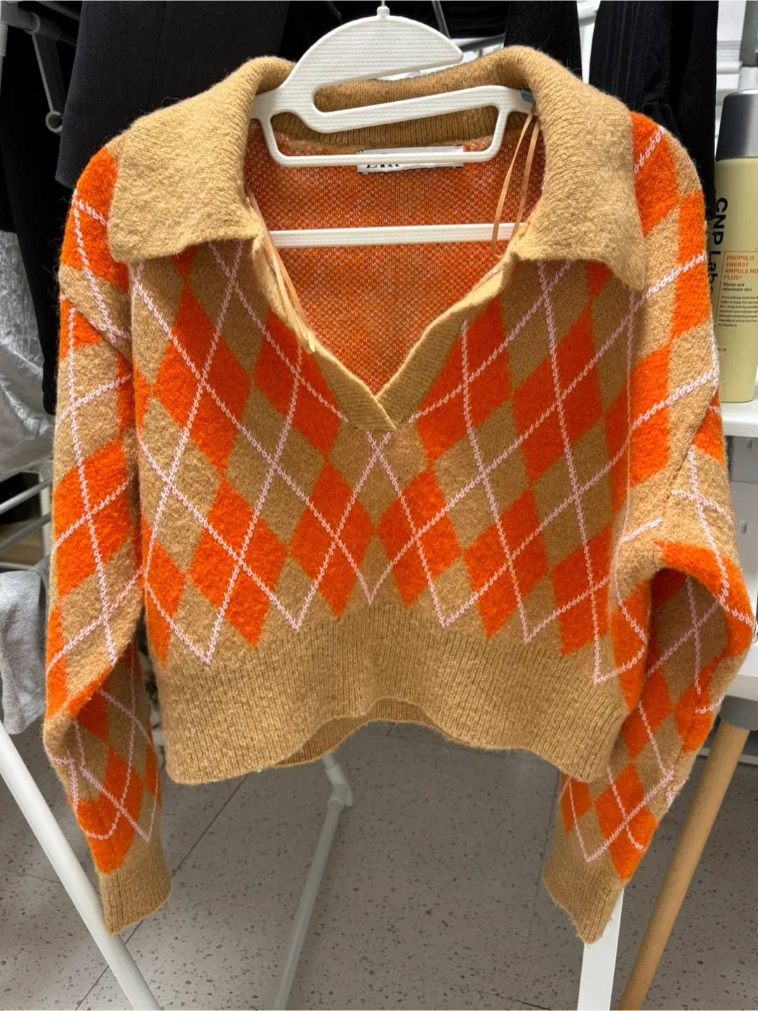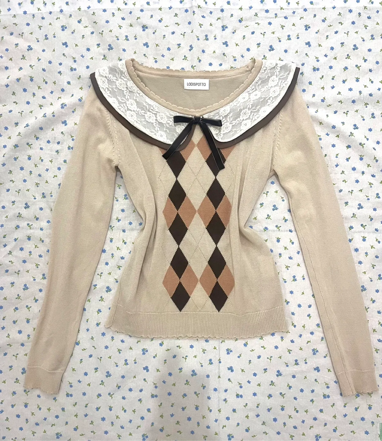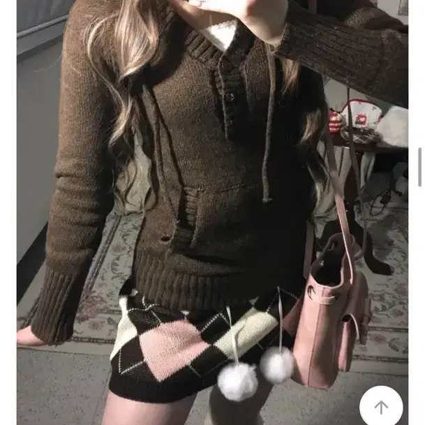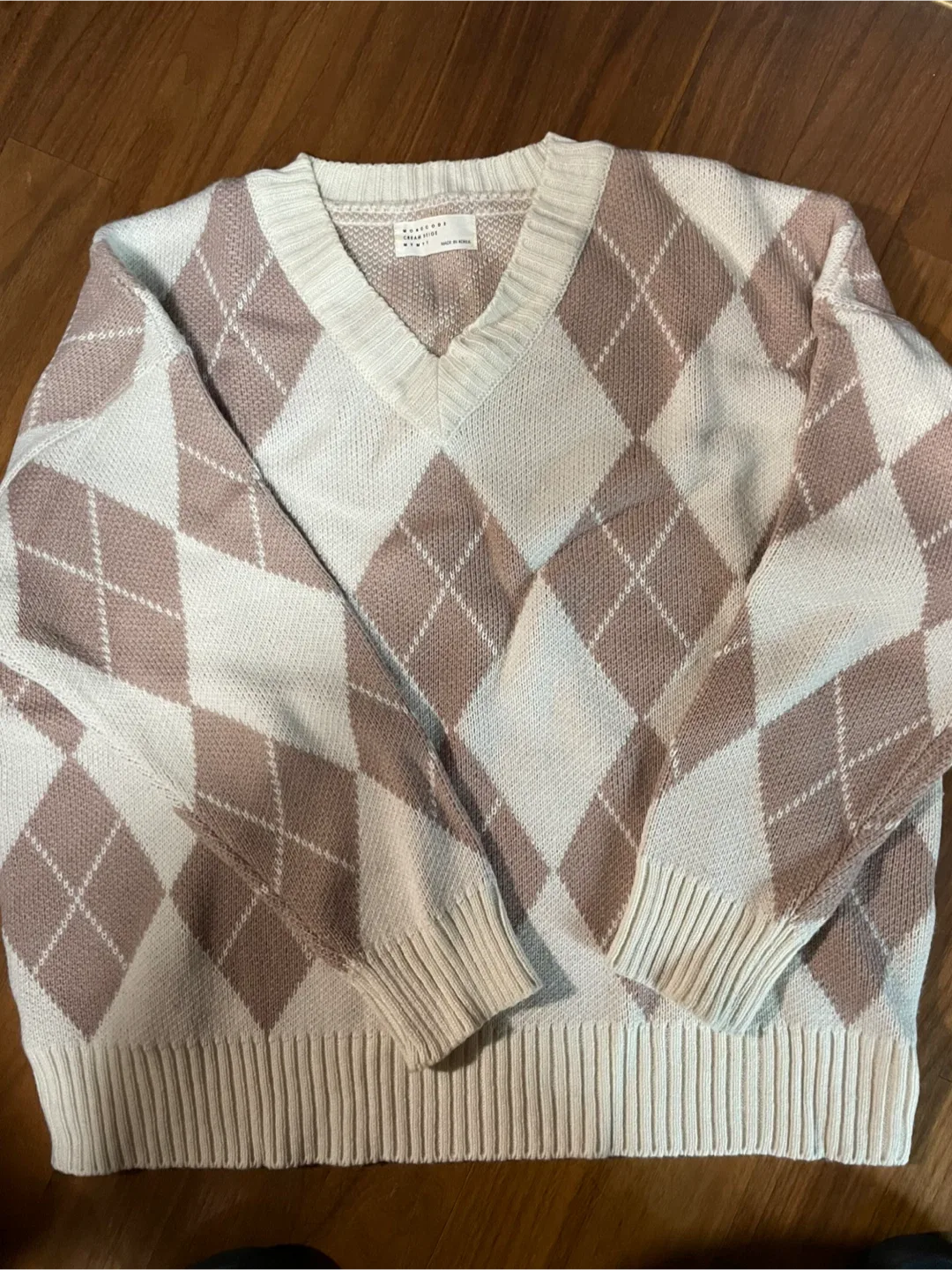 타임 아가일 패턴 스트링 니트