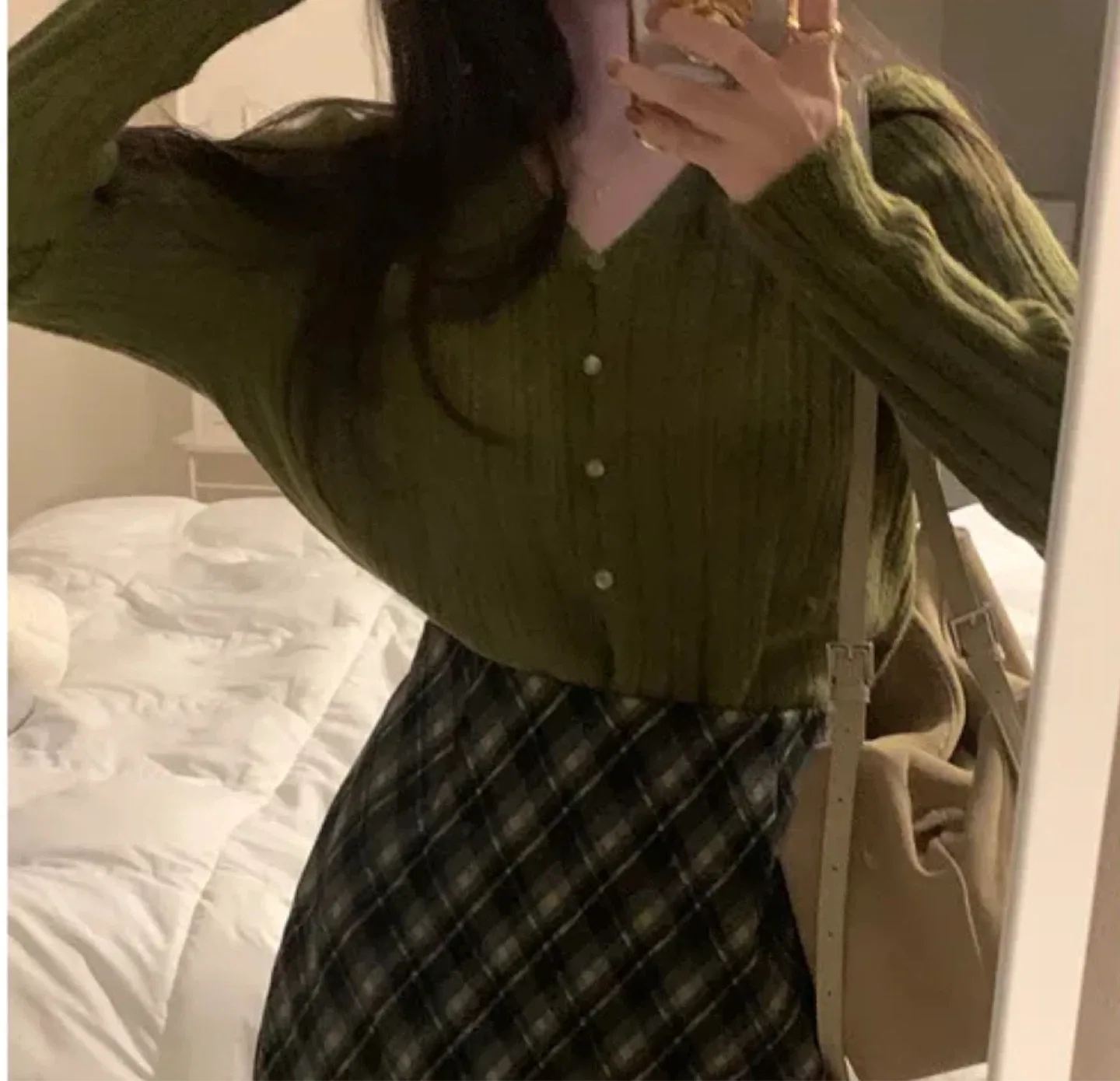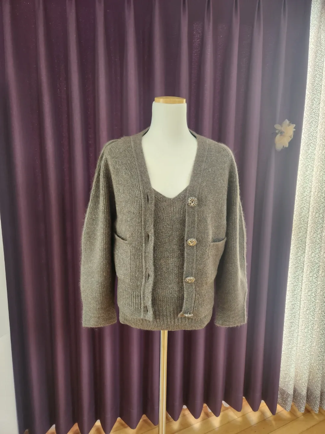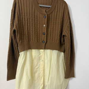 유라고 린넨 홍반 가디건 니트 세트 F