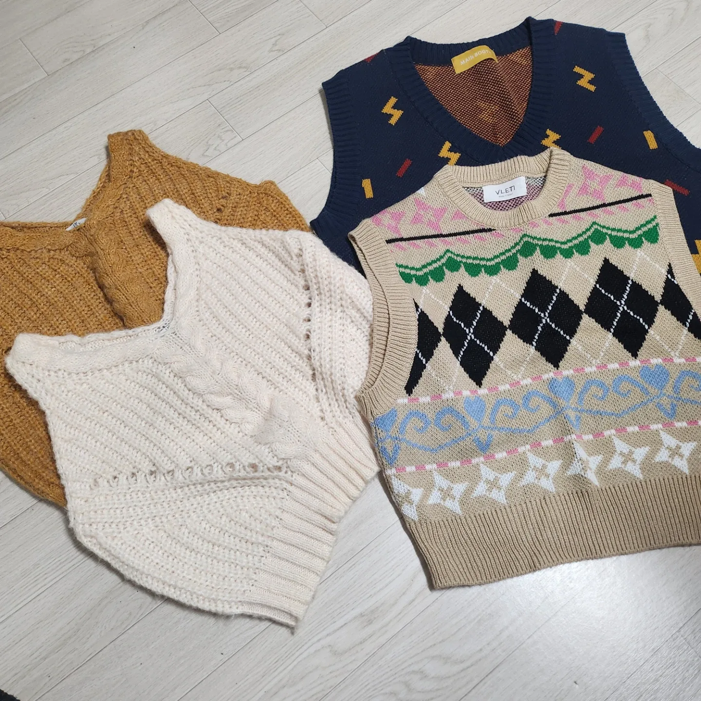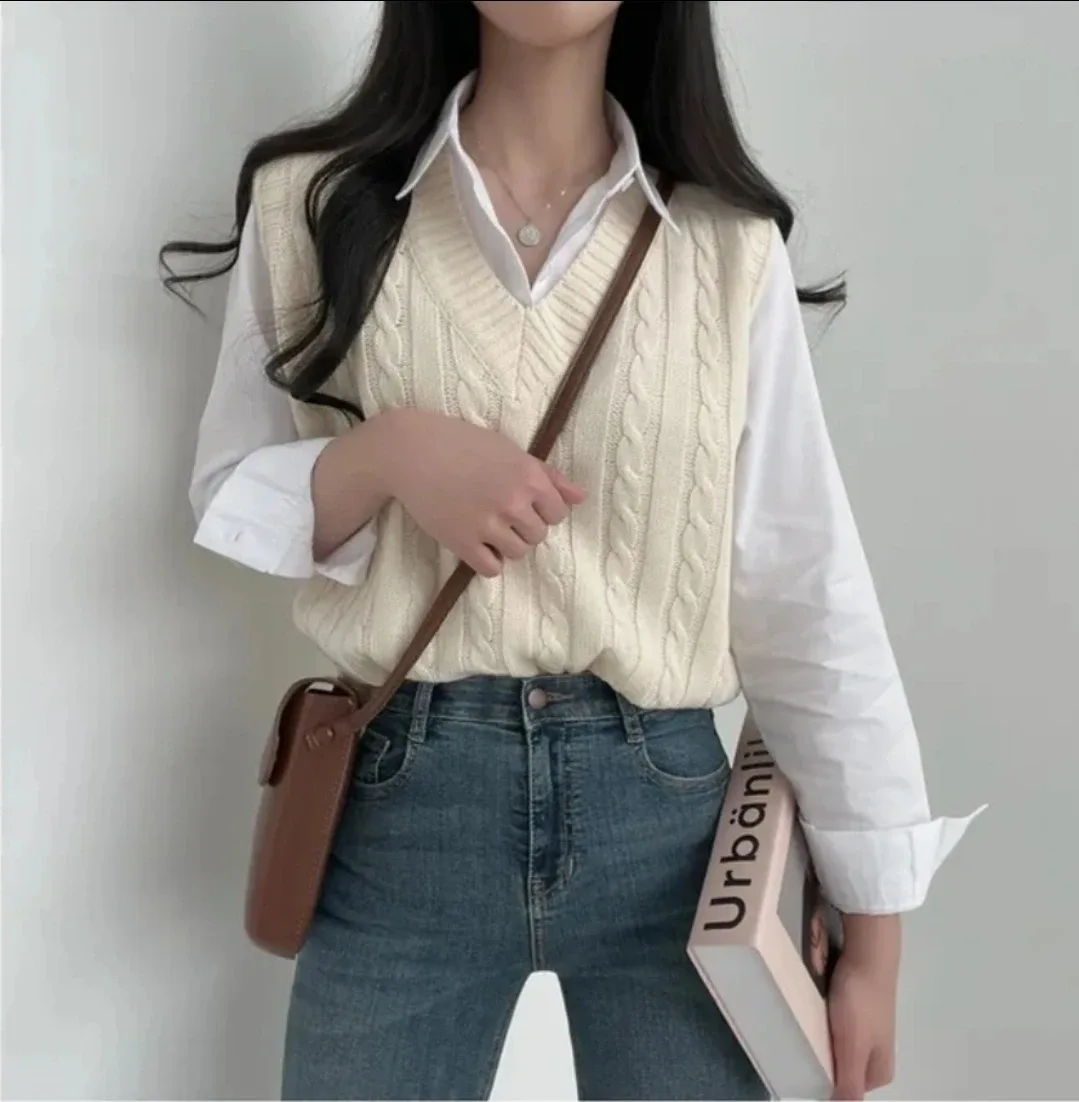 번개NOD 화이트 케이블 니트 조끼