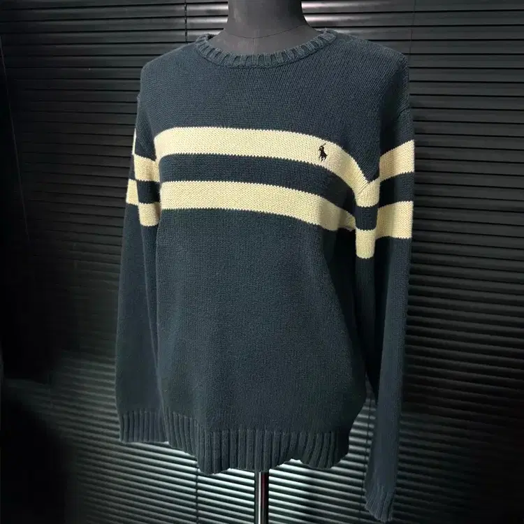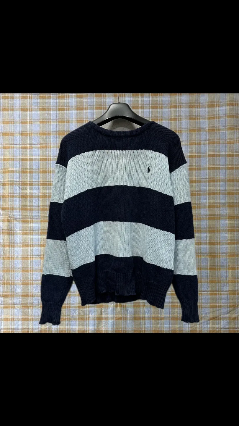 번개폴로 랄프로렌 남색 네이비 아이보리 니트 스웨터 코튼 스트라이프 M 95
