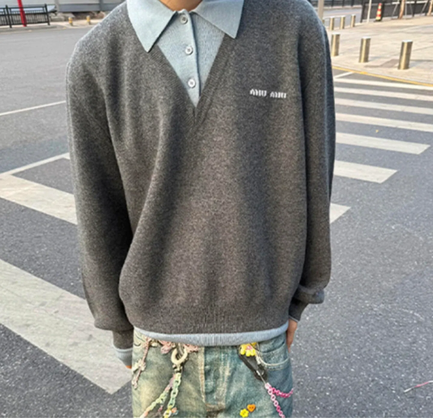 번개[PLZPROJECT] 플리즈프로젝트 브이넥 니트
