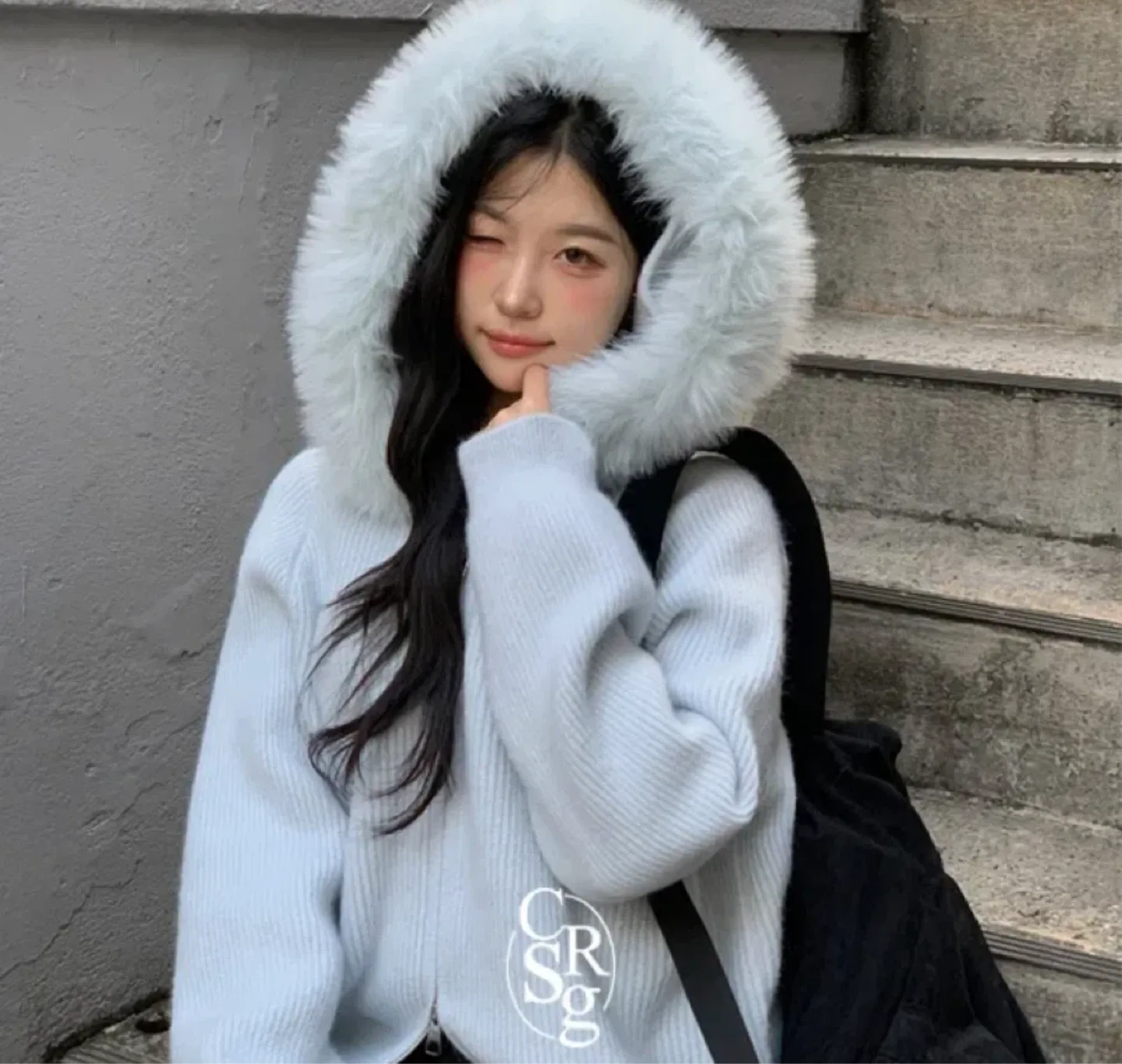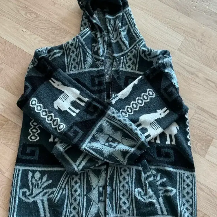시스템크로셰 후드 니트 집퍼