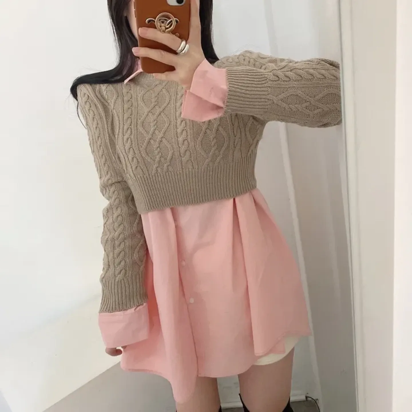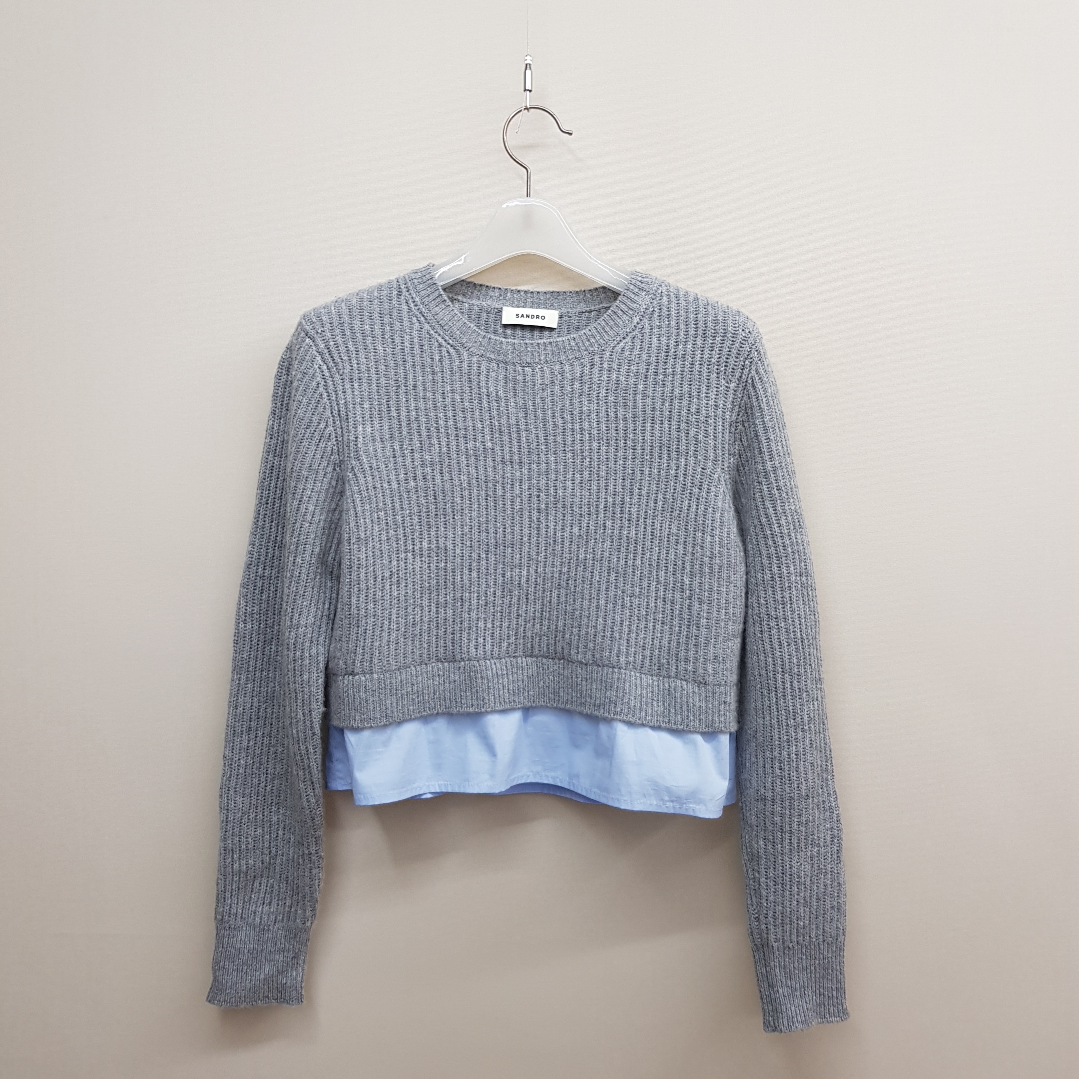 플리산드로 SANDRO 레이어드 크롭 니트 셔츠 디테일 1사이즈