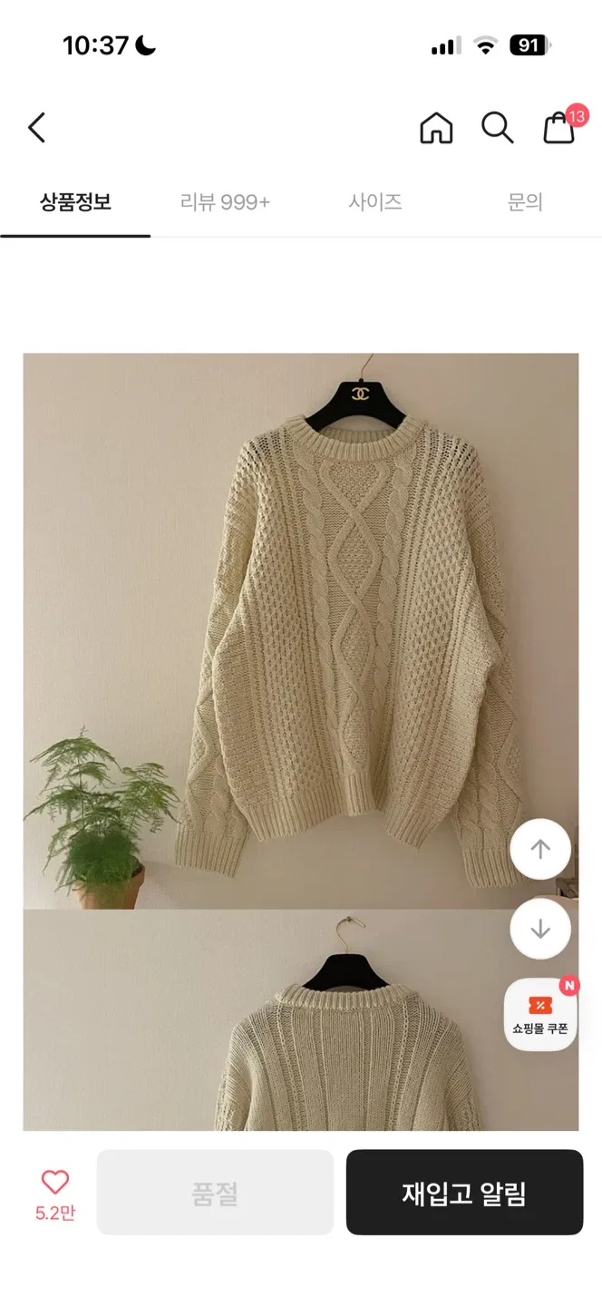 케이블 니트 스웨터