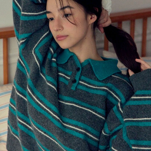 망고매니플리즈 해리 스트라이프 니트 그레이 판매합니다.새상품!