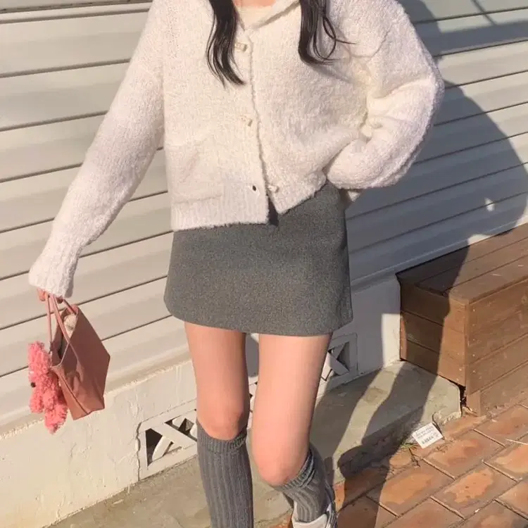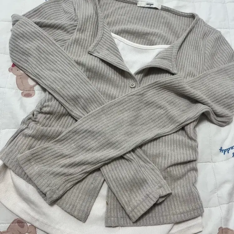 번개베이지 셔링 니트 가디건