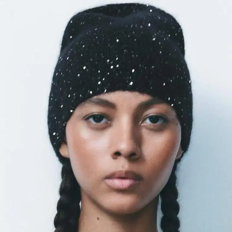 번개자라 시퀸 니트 비니