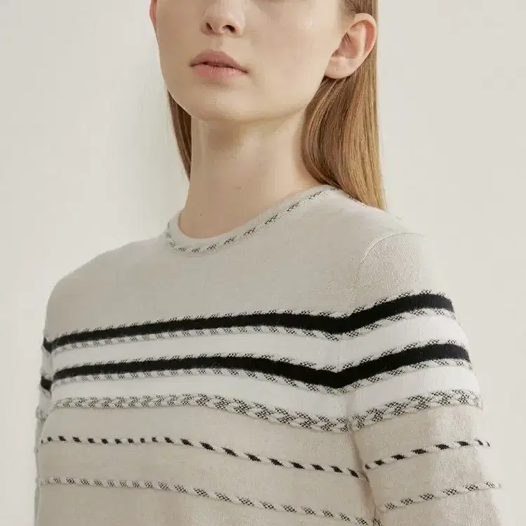 번개21 한섬 더캐시미어 캐시미어100% 엠보라인 니트 티셔츠 반팔스트라이프