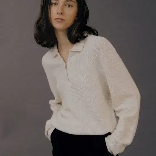 코튼 빅사이즈 오버핏 니트 골지 반집업 폴라 맨투맨