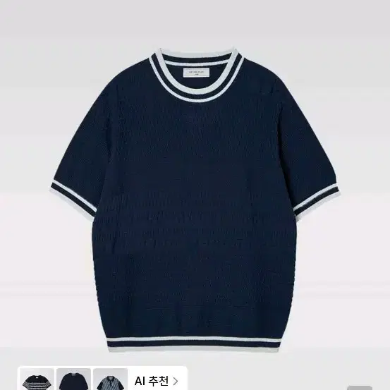 번개[애프터프레이] 자카드 스트라이프 립 크루넥 하프 니트 네이비