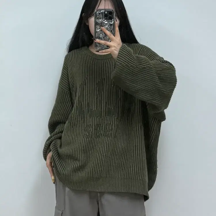 지지블랙 로먼 오버핏 골지 라운드 니트 맨투맨 빅사이즈