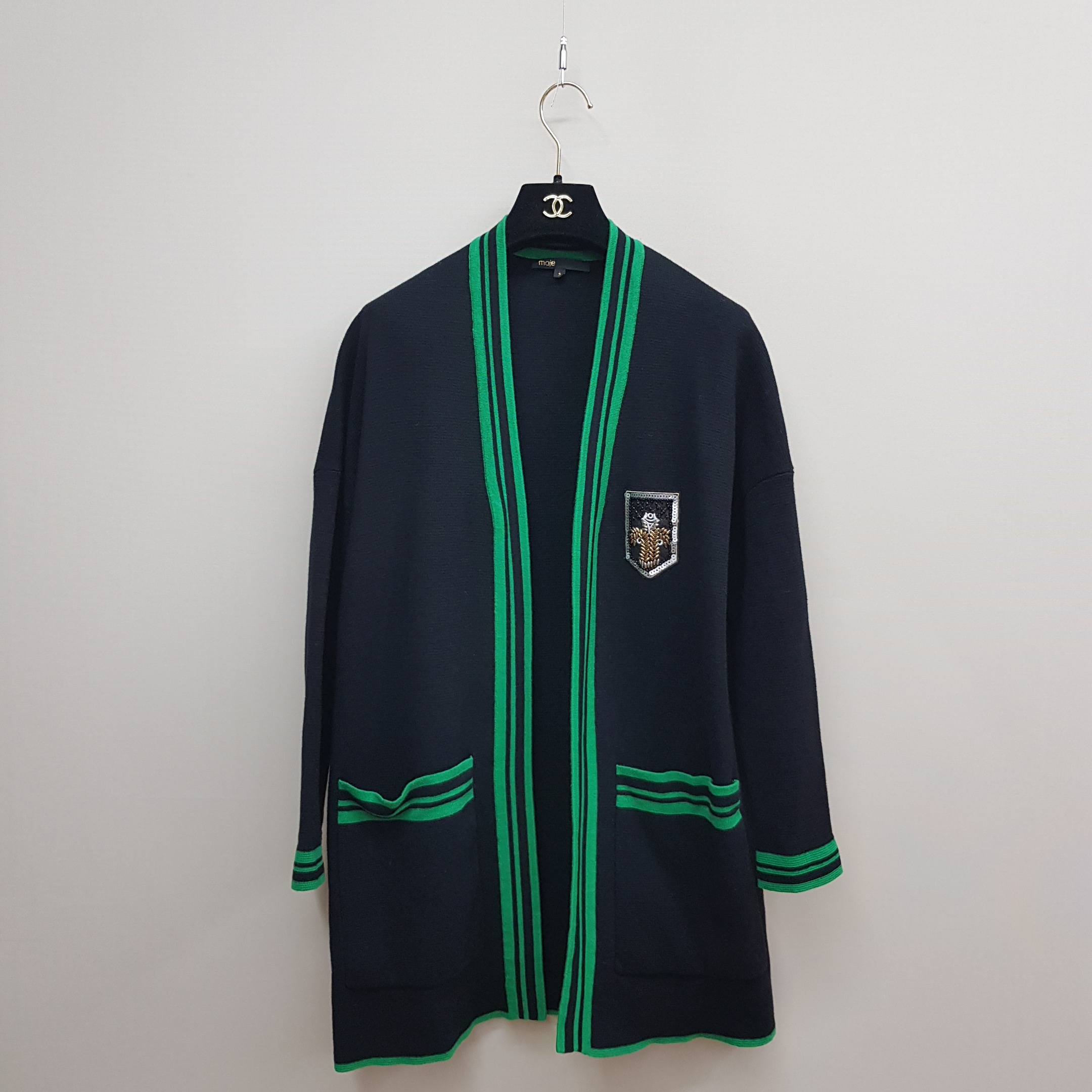 플리마쥬 MAJE 그린 배색 오픈 니트 가디건 2사이즈