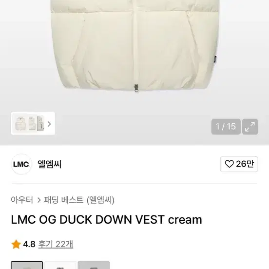 번개아이보리 다운 패딩 조끼 L