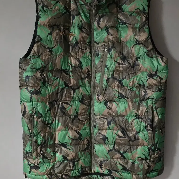 번개컬럼비아 카모 구스다운 경량 패딩조끼푸퍼 베스트. 싸이즈105 남