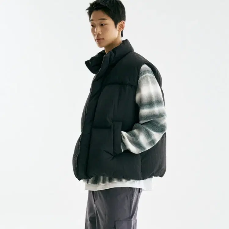 번개(M-L) 무신사 스탠다드 패딩 점퍼자켓 조끼 그레이 덕다운-17006