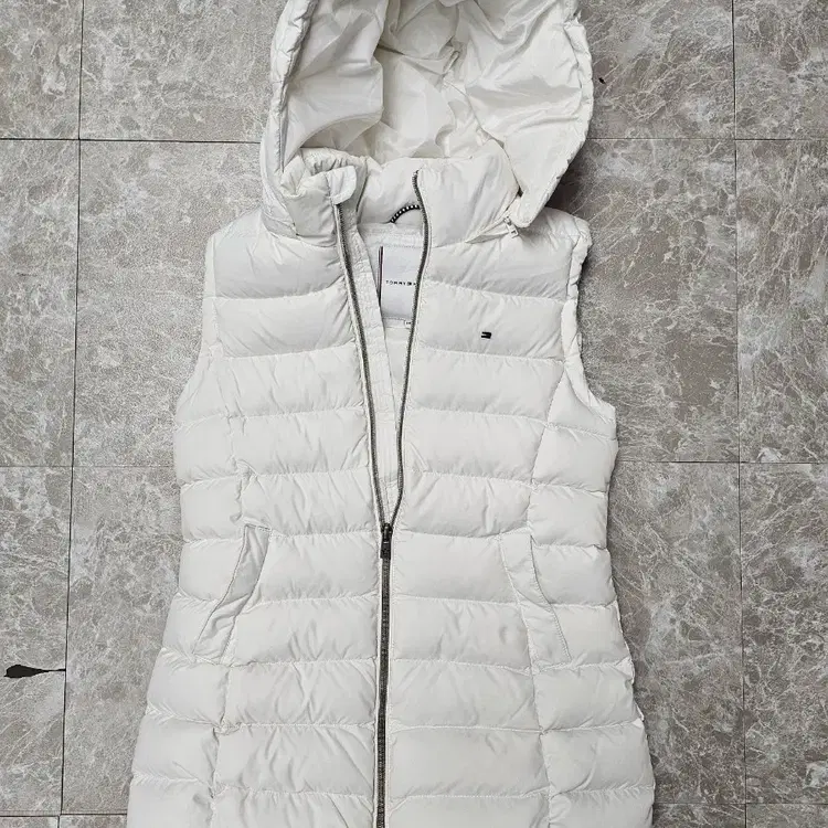 번개타미힐피거 아동 후드 다운 패딩 조끼 화이트 140