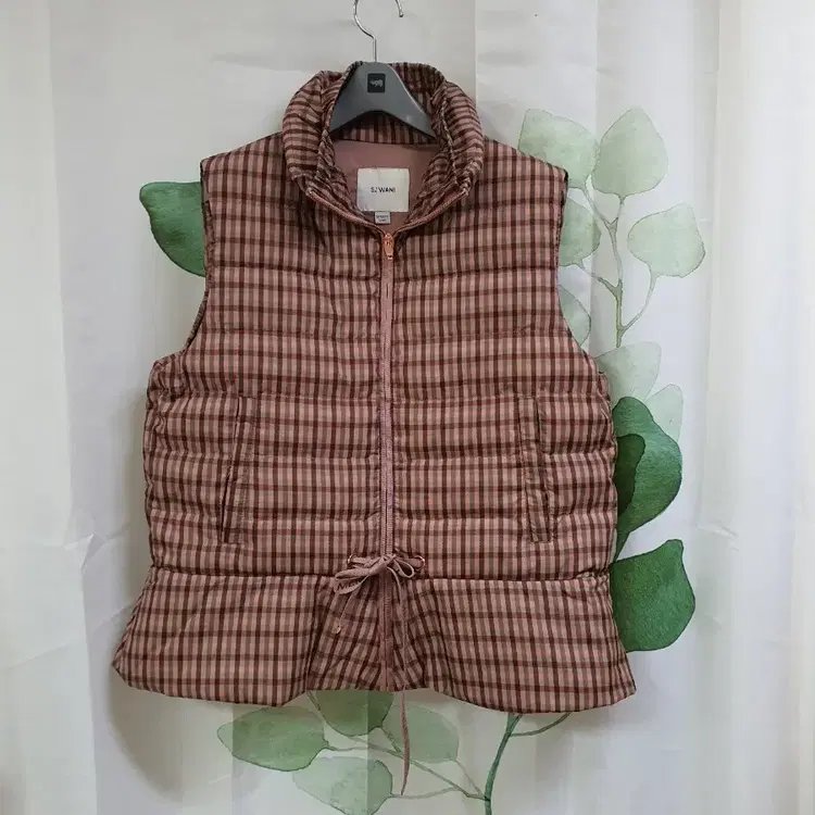 한섬 타임 글리터 체크 구스 다운 조끼 패딩
