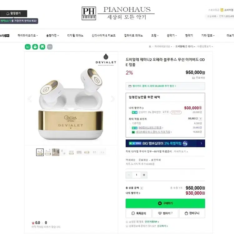번개DEVIALET GGMINI 이어폰 판매(반값택배포함)