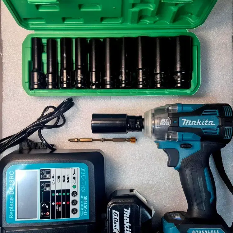 번개마끼다 브러시리스 임팩 렌치 + 소켓 세트 18V 배터리 충전기