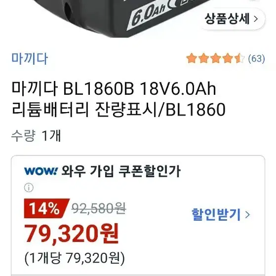 마끼다 6.0암페어 배터리