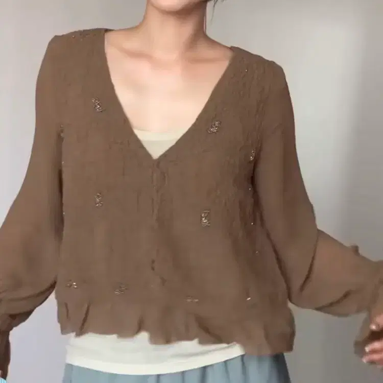 6907 마시모두띠 라임 비스코스 실키드레이프브이넥블라우스 [M]