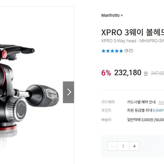맨프로토 mhxpro-3wg 기어무브먼트 삼각대 헤드