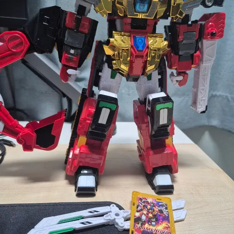 번개메탈카드봇S 레드블리츠 단순 전시품 풀구성 (무릎각 개수품)