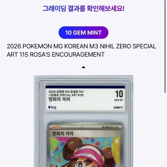 번개포켓몬카드 명희의 격려 SAR PSA10 등급 카드 일판