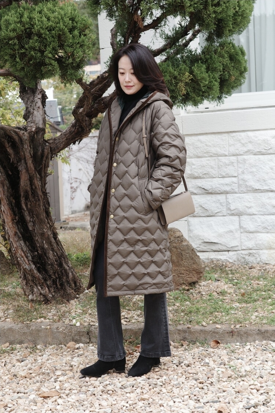 24FW 문트위드 헤링본 퀼팅 코트 HZCO4D691BK