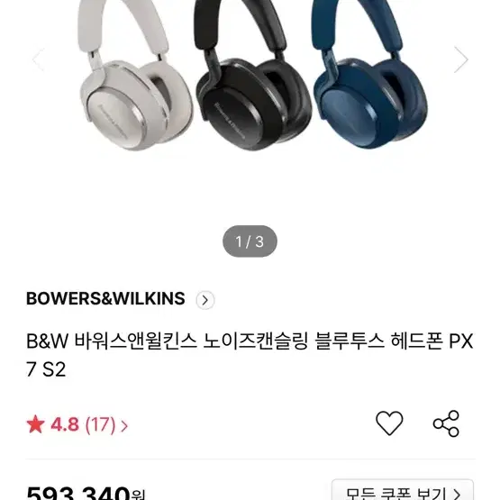 바워스앤윌킨스 Px7 S3 블루투스 헤드폰