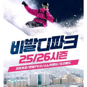 소노 비발디파크 스키장 스키리프트 무료이용권+스키&보드 렌탈 50%이용권(~26.04.24)