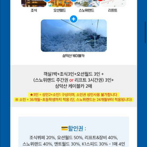 번개비발디파크 스키 리프트 할인권 + 오션월드 50%할인쿠폰