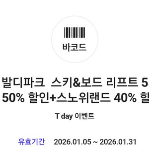 비발디파크 스키&보드 리프트 50% 할인 쿠폰